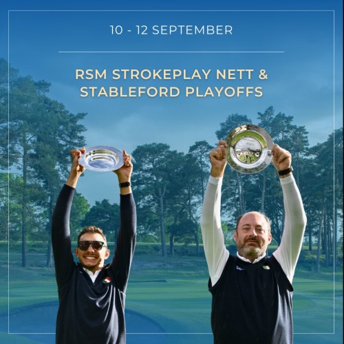 Thursday 7th of October - Two players from each division will compete their respective Play-off Final. The two matches will start ahead of the general field for the RSM Golf Day and will play through the field. The six players from the Net and Stableford divisions who are not competing for the final will play in the RSM Golf Day.