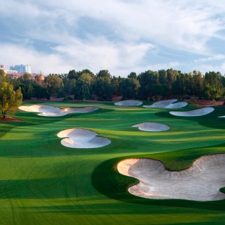Designed by Christy O'Connor Jnr., this course complements the neighbouring Faldo Course and also takes full advantage of being situated in a fertile valley. Its various water features, both lakes and watercourses that are spread throughout the entire course, demand accuracy and test from all golfers, and the rich topsoil has been skilfully landscaped and planted with mature palm trees, affording a lush, ornamental setting like an extensive oasis.