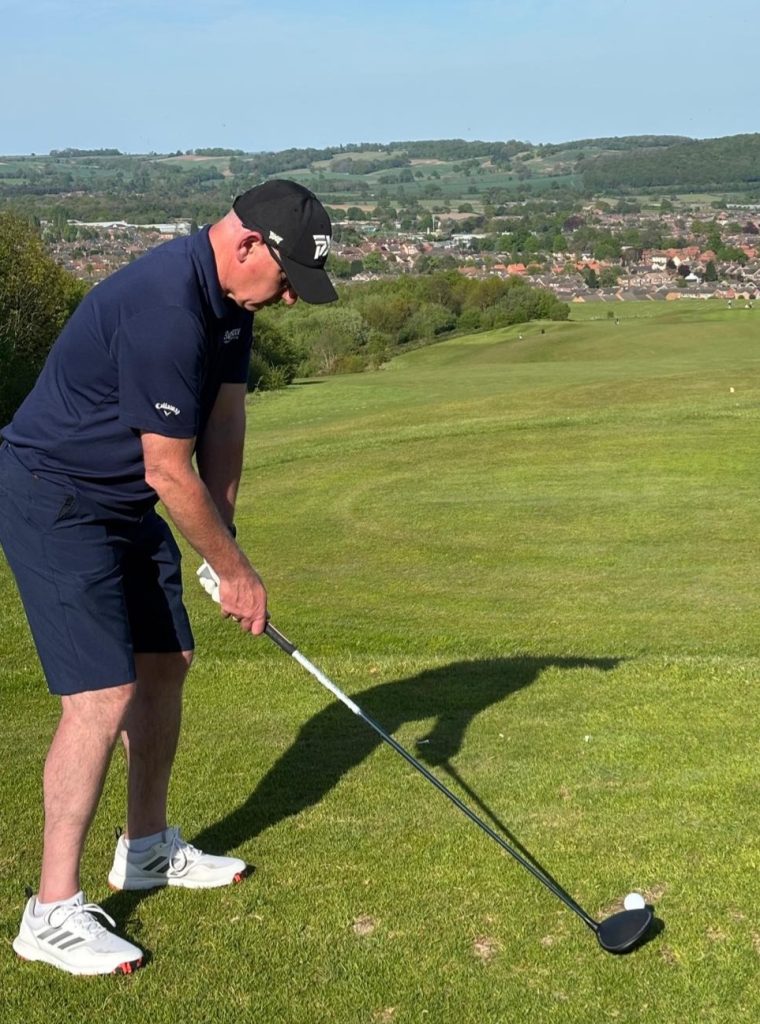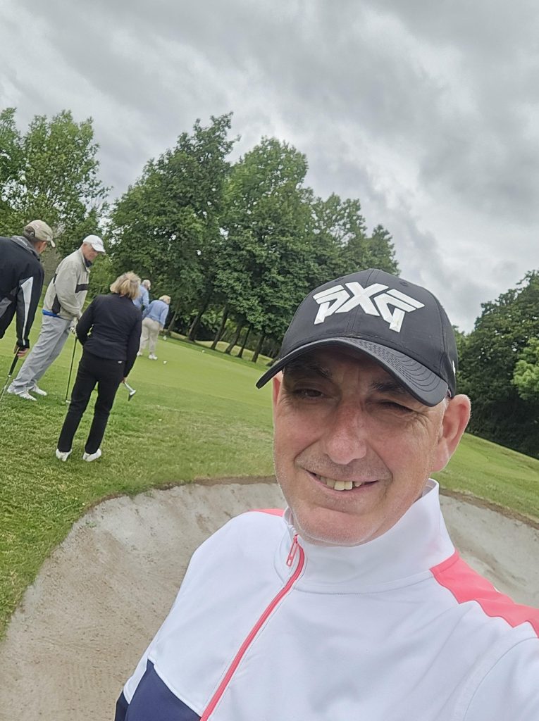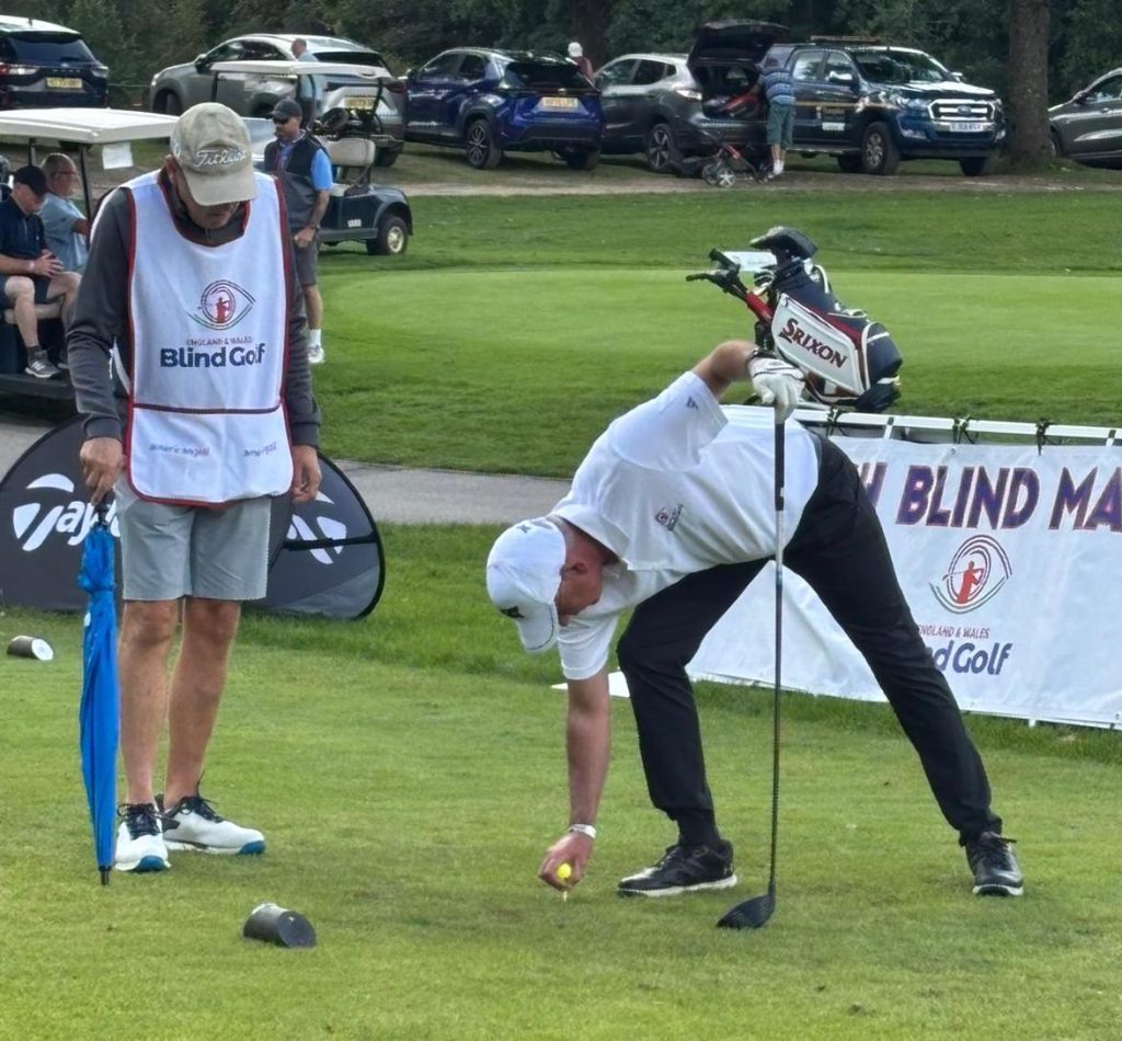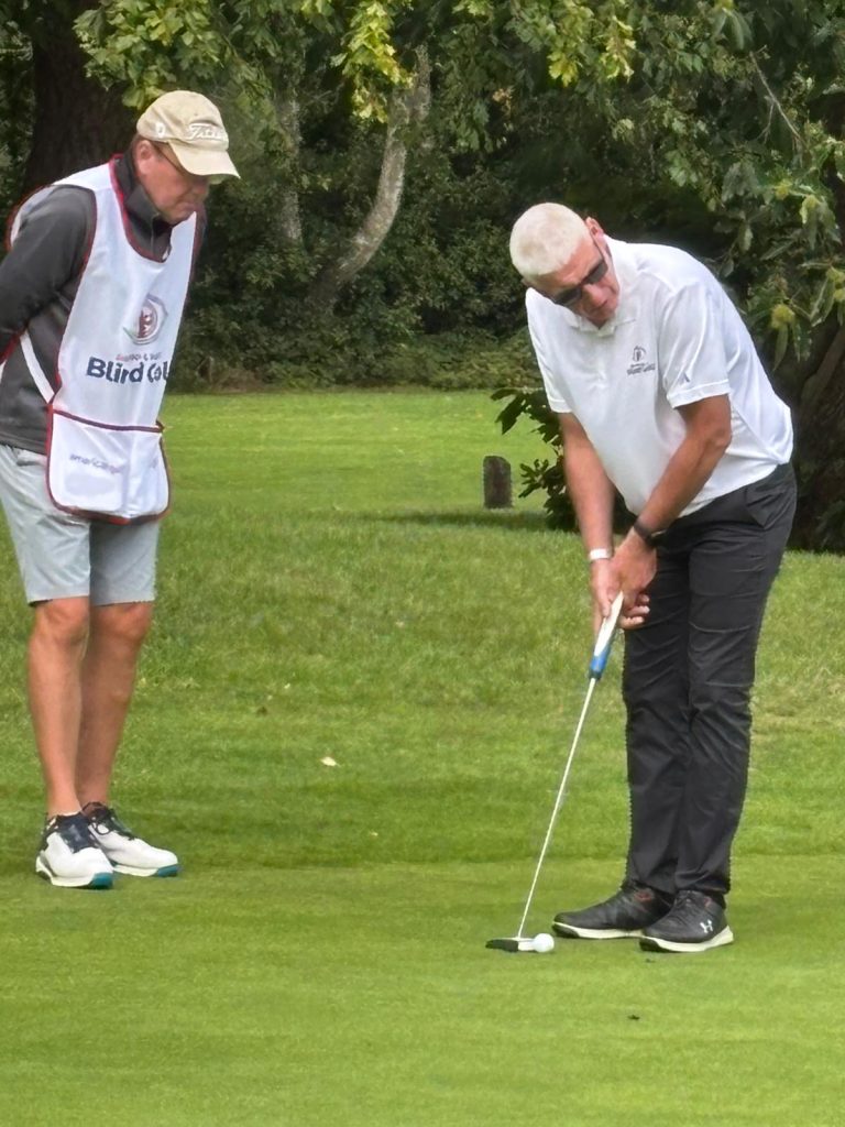He plays with friends at Blind Veterans UK and recently started in competitions run by England and Wales Blind Golf, enjoying some success in terms of reaching a decent standard (he has a Handicap Index of around 37), winning matches, and occasionally reaching 300 yards from the tee with a well-hit drive.
