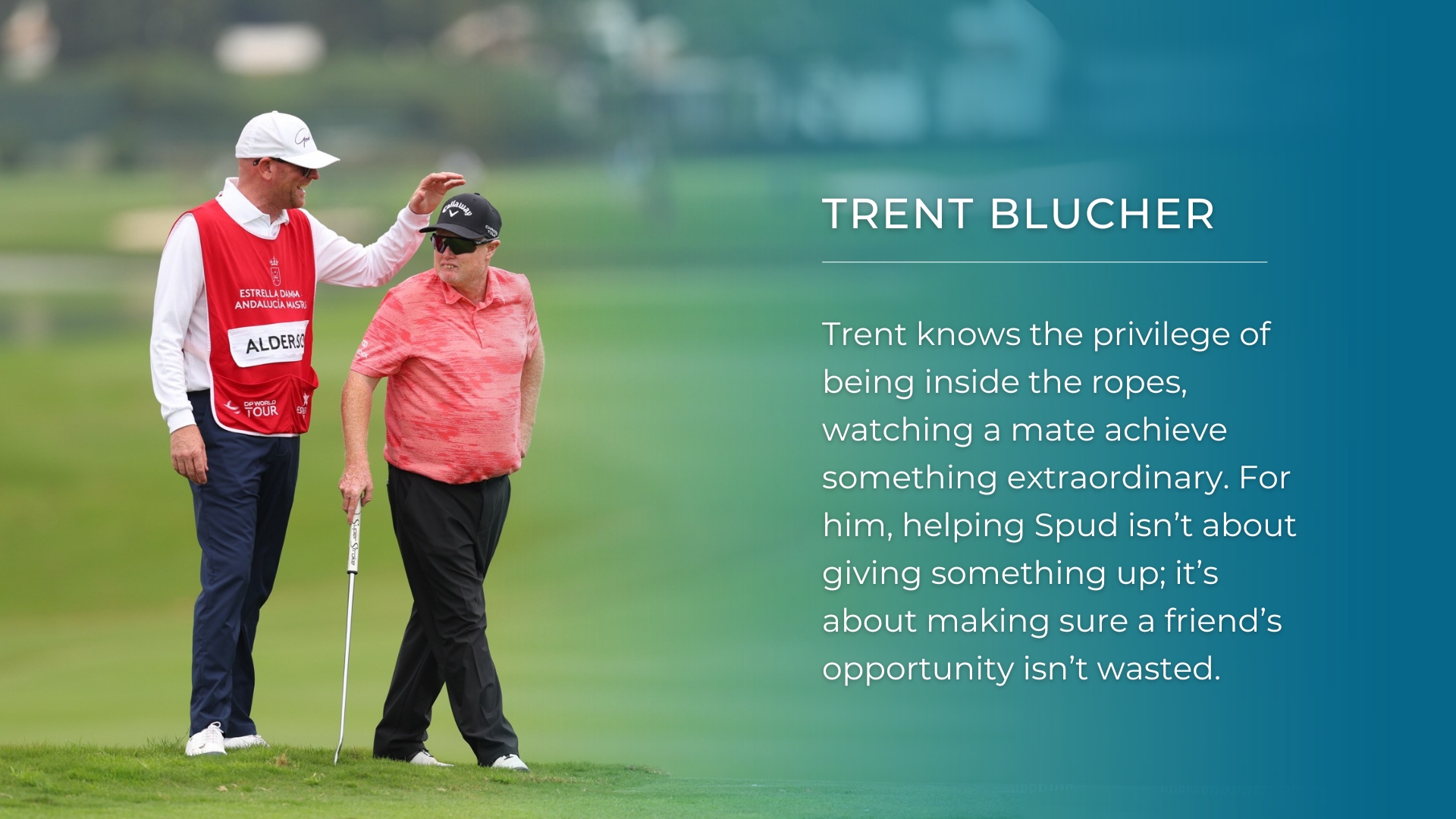 Twelve months can feel like a lifetime when opportunity decides to change the direction of an ordinary life. For Steven Alderson – better known as Spud – and his mate-turned-caddie, Trent Blucher, the past year has been nothing short of extraordinary.